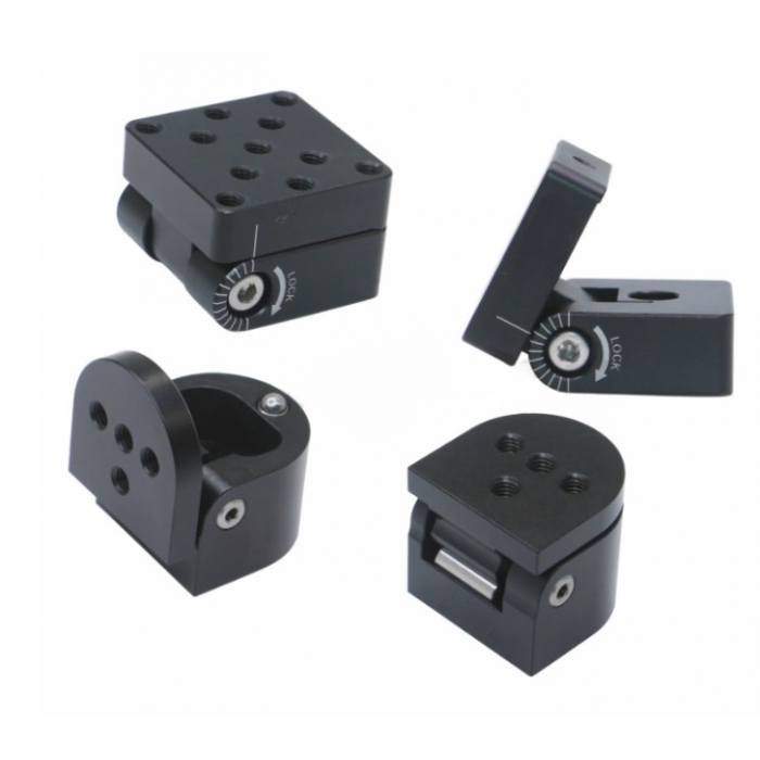 產品特色: 鋁合金材質,表面黑色陽極處理。 直角翻轉安裝座,90°翻轉/復原可達到避開光路或返回到光路中。 可調翻轉安裝座,水平安裝時,角度調節範圍為90°,垂直安裝時,角度調節範圍為180°。 每隔15°刻有標記。 型號 名稱 A 重量(g) OMPM-F6 直角翻轉安裝座 M6沉頭孔 30 OMPM-F4 直角翻轉安裝座 M6螺紋孔 29 OMPM-AF4 可調翻轉安裝座 53