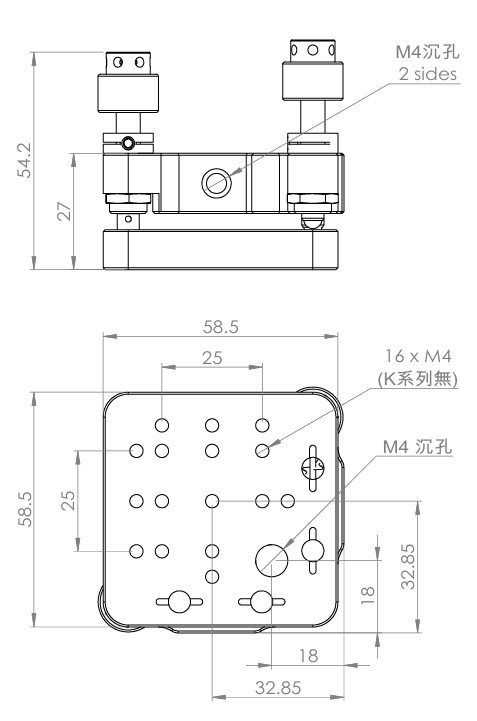 | OPT-B1.5 | 檯面尺寸 58.5 x 58.5mm, 無螺紋 |
