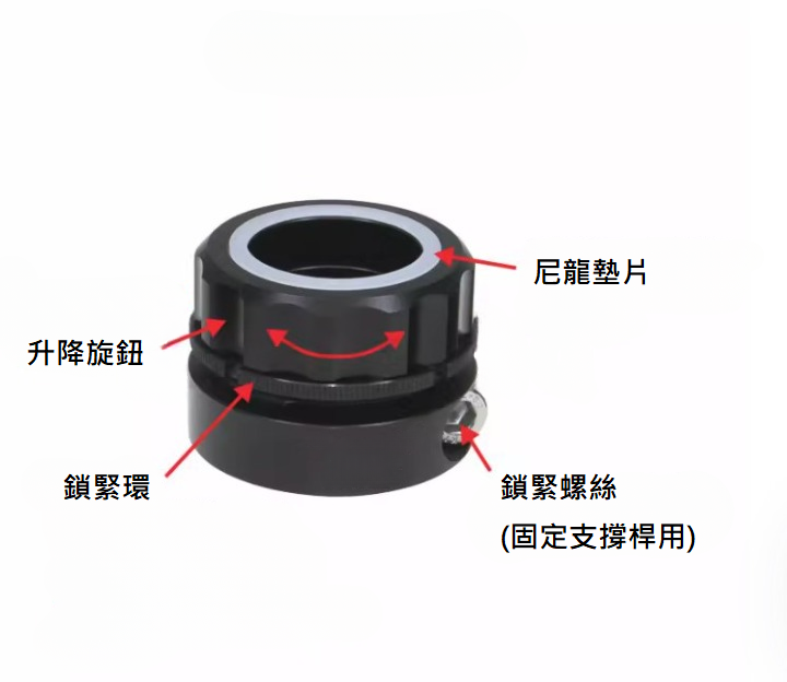 - 升降調節後可通過附帶的鎖緊環鎖定機構;