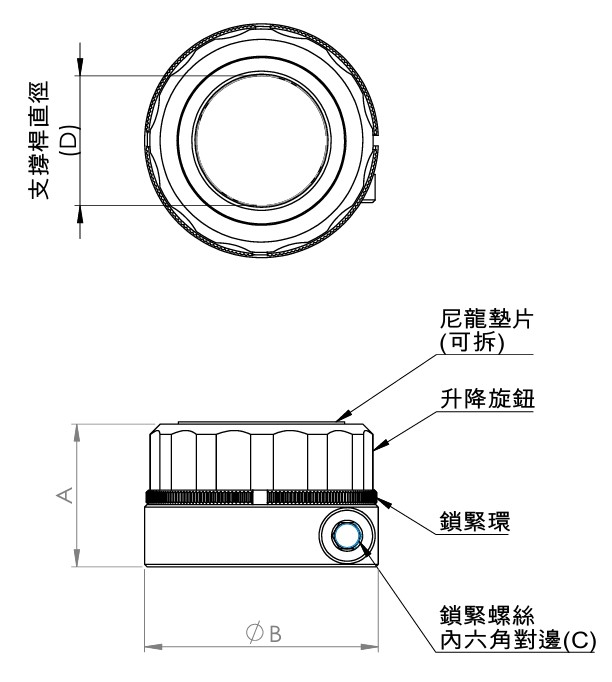 - 附帶的尼龍墊圈可在調節高度時防止摩擦刮損;