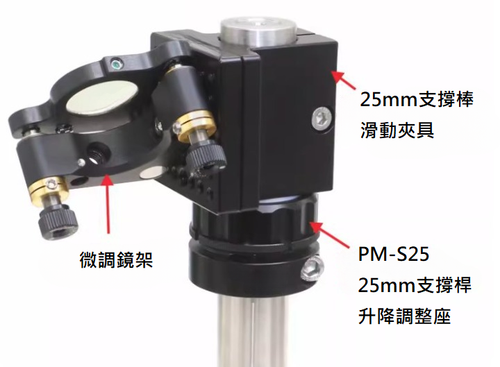 - 可安裝在直徑12mm、12.7mm、25mm、25.4mm、38mm的支撐桿。