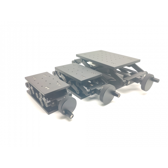 機構材質:鋁合金黑色陽極處理 推進方式:精密螺桿驅動 型號 檯面尺寸 (mm) 行程 (mm) 高度 (mm) 荷重 (kgf) SJ04 80x140 30 59-89 20 SJ05 100x160 50 68-118 25 SJ06 160x220 70 90-160 30