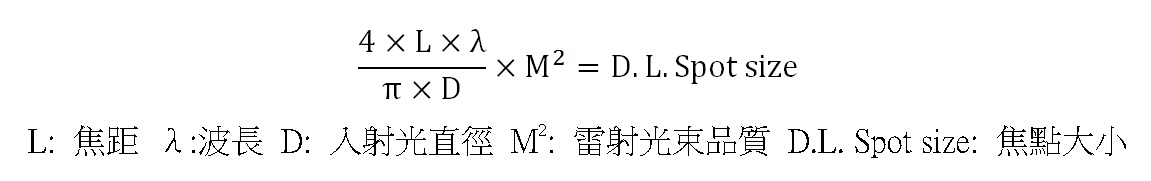 - 使用時需搭配特定參數的雷射,如:波長、光束直徑、光束品質(M2),如果參數不同,會影響品質。