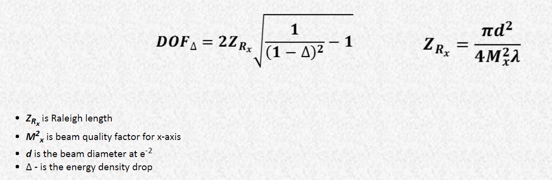 - 加工不同折射率的材料時,焦點深度會不相同,折射率越大,焦深會越長。