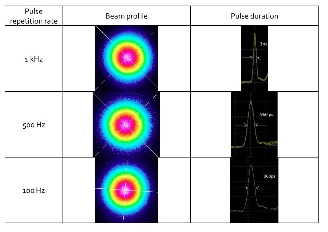 將Nd:YAG晶體配置在長度僅為數毫米的共振腔中,因此此款雷射得以設計的非常緊湊,並且具有相當高的性能,可達到800ps-2ns的脈衝寬度以及數萬瓦的尖峰功率,並可依需求提供高達3pm的波長穩定功能。