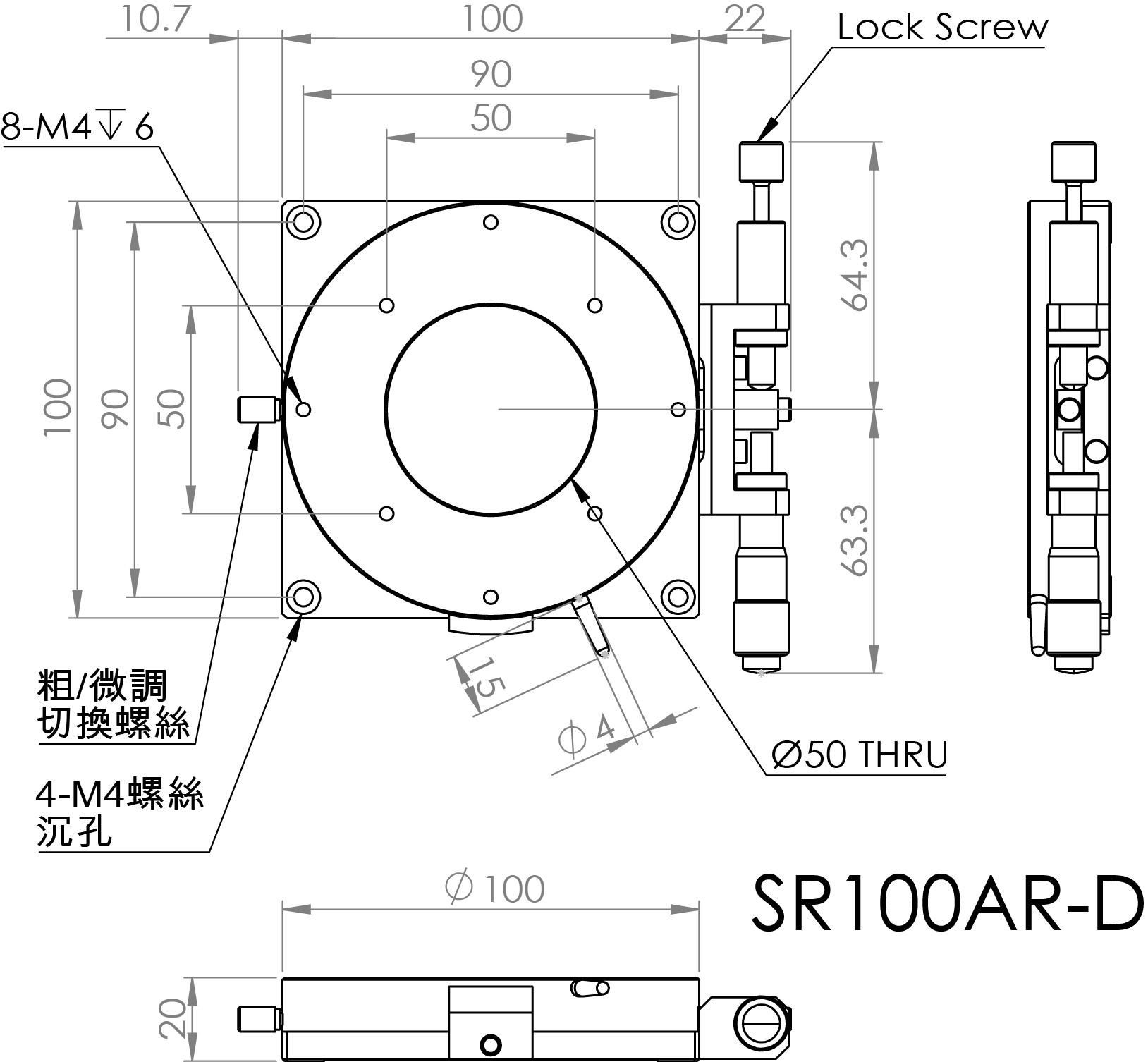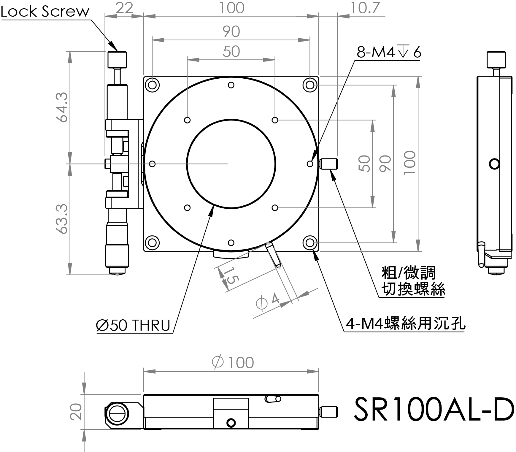 檯面尺寸:Ø100 mm