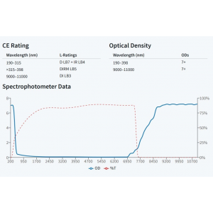 OD(Optical Density):為對雷射的阻擋力,數值越大對雷射阻擋的能力越高,在可見光雷射的應用時,須考慮對光時仍要保持看得到雷射光點而又不刺眼的狀態,因此要選擇適當的OD值,以免阻擋過大而看不到雷射光點無法對光,OD值對應穿透率與阻擋值可參考以下表格: