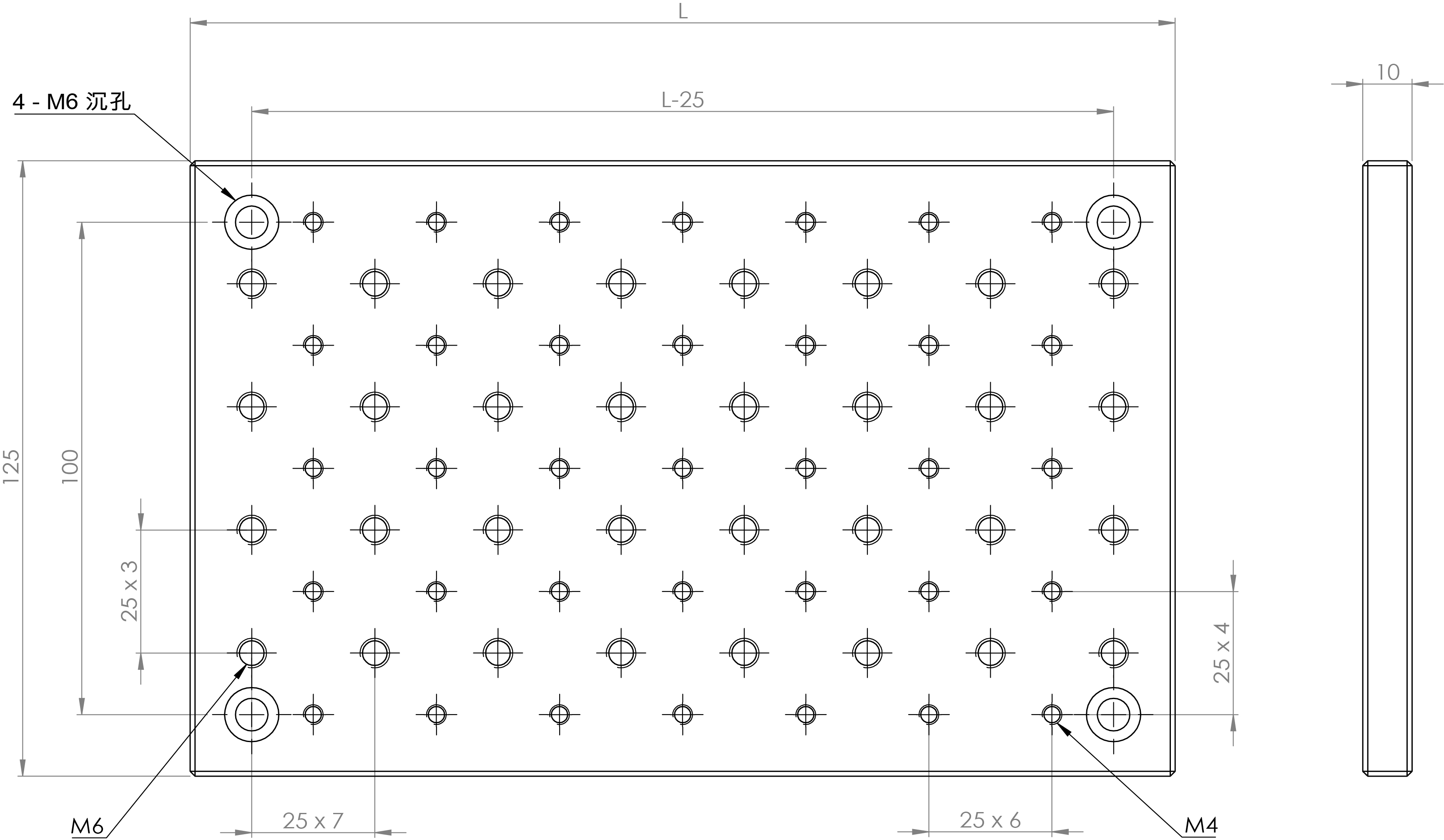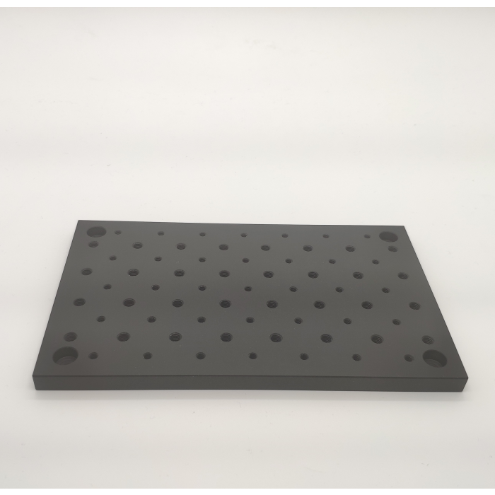 材質:6061T6鋁合金,黑色霧面陽極處理 螺孔:公制M4/M6 孔距:公制25mm 寬度:125mm 厚度:10mm 平整度:±0.1 mm 型號 長度(L) AOB20M46 200mm AOB30M46 300mm AOB40M46 400mm AOB50M46 500mm