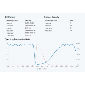 高功率紫外光+藍綠光+近紅外雷射護目鏡(防護範圍180-534nm 以及 850-1100nm)