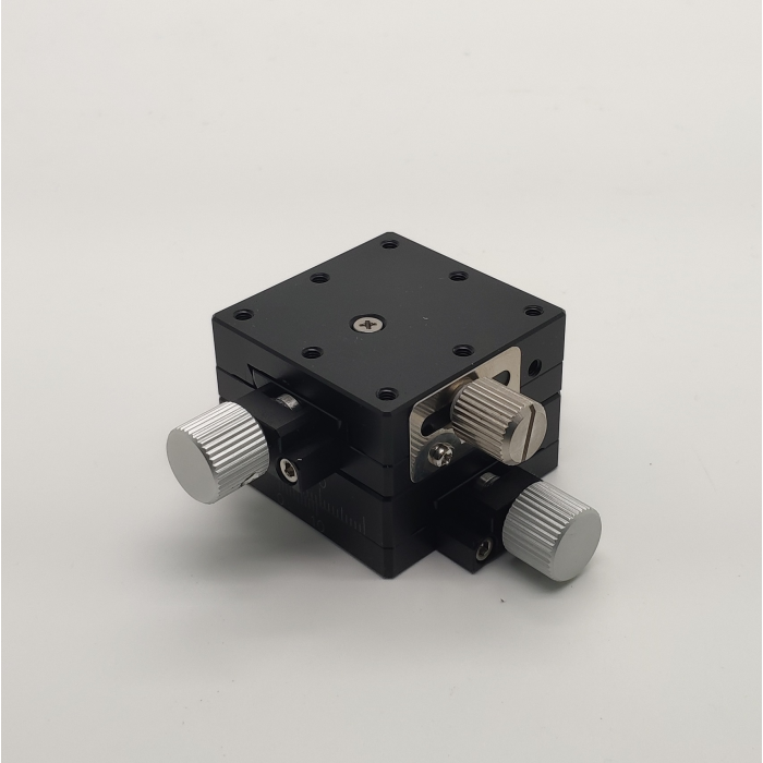 材質:鋁合金黑色陽極處理 檯面尺寸:60 x 60 mm 厚度:17 mm 行程:18 mm 精密螺桿驅動:螺距0.5mm 最小刻度:0.1mm 荷重:4 kgf 重量:0.34 kg 型號: SD60S-L:鎖固螺絲位在左邊 SD60S-R:鎖固螺絲位在右邊