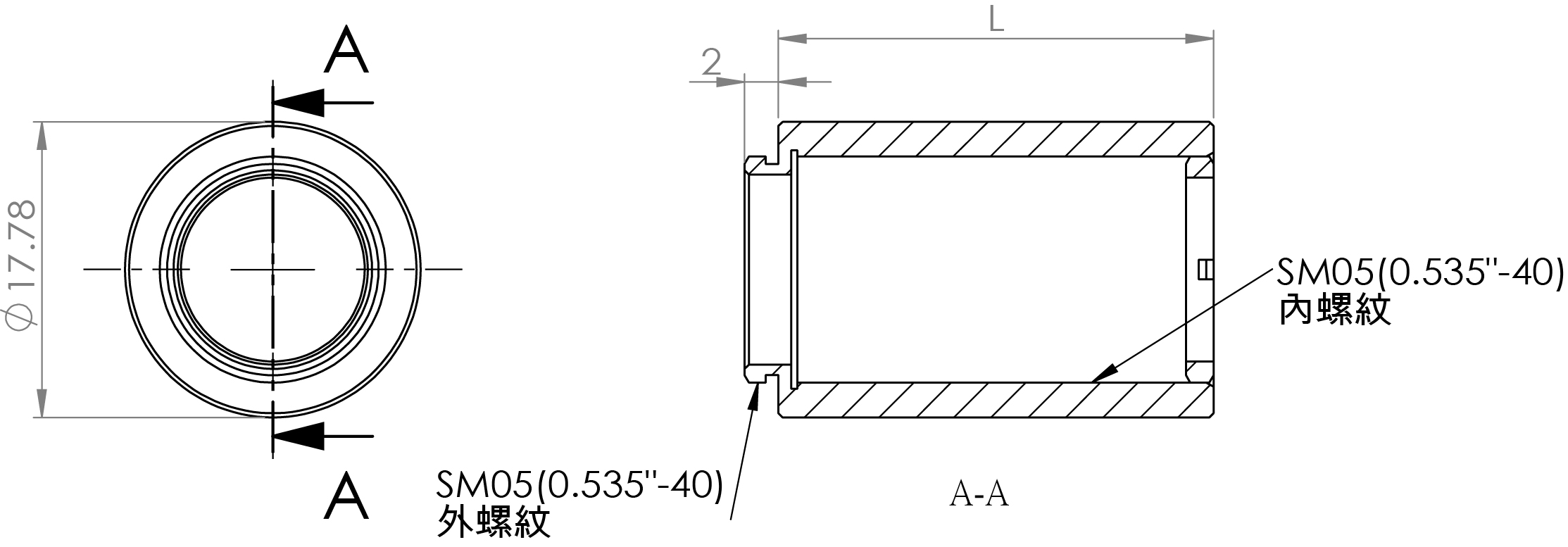 一邊SM05(0.535"-40)內螺紋/一邊SM05(0.535"-40)外螺紋鏡筒