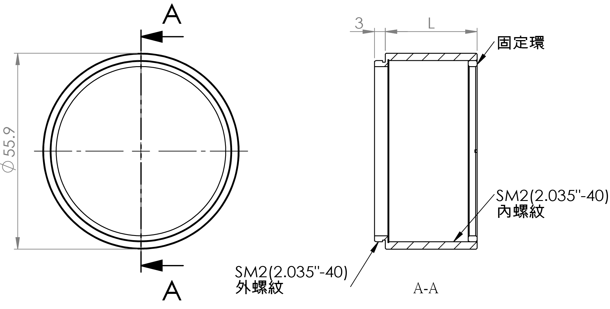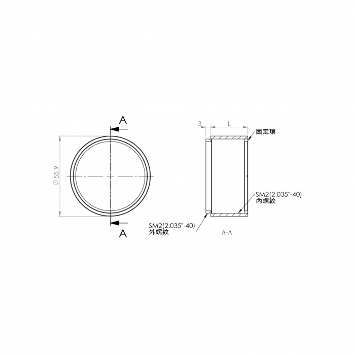 一邊SM2(2.035"-40)內螺紋/一邊SM2(2.035"-40)外螺紋鏡筒