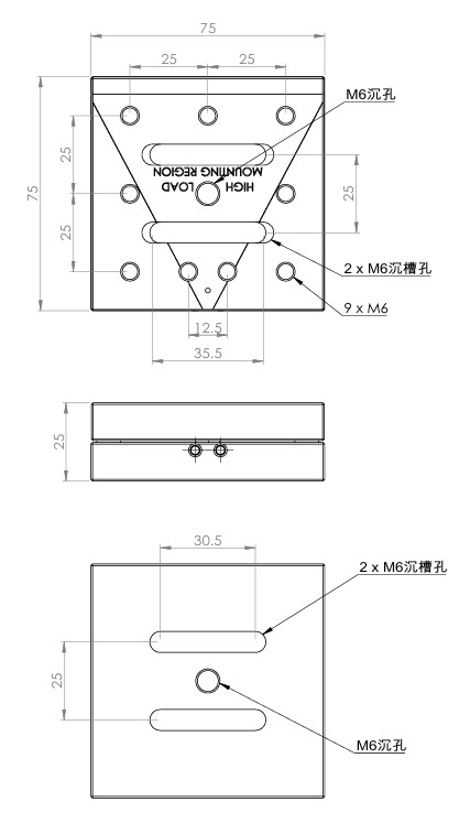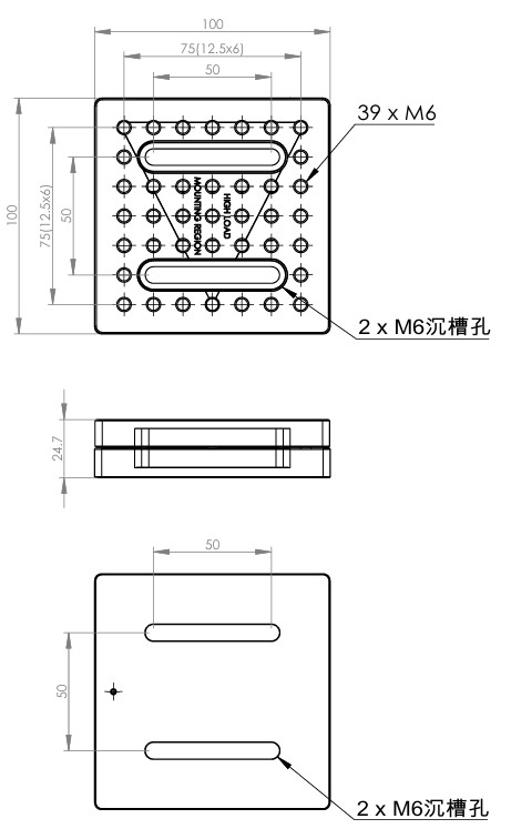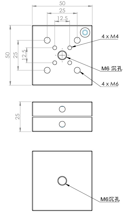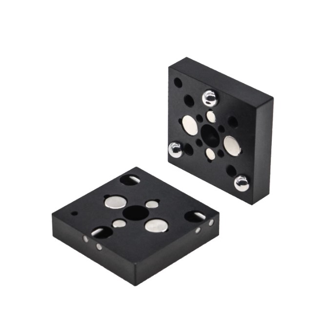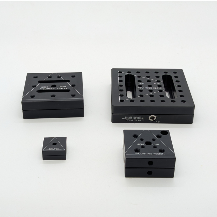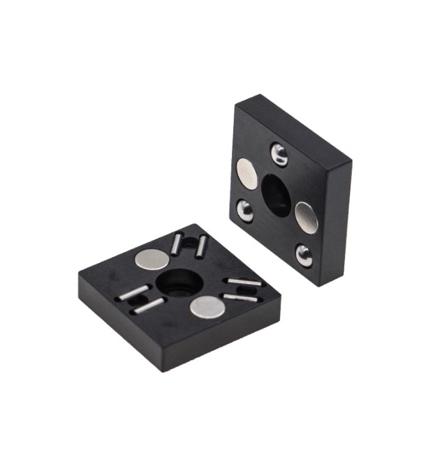 快拆式磁性座由上下兩塊鋁合金板以磁鐵結合,搭配滾珠和 V 型槽設計可實現高重複性的插入和移除組件。 型號 MB25B MB50 MB75 MB100 外觀 尺寸 25 x 25 mm 50 x 50 mm 75 x75 mm 100 x 100 mm MB25B: MB50: MB75: MB100: