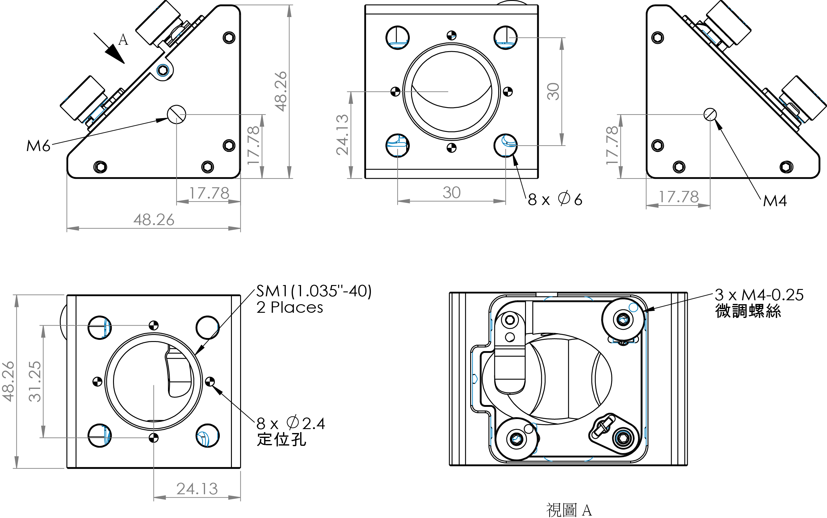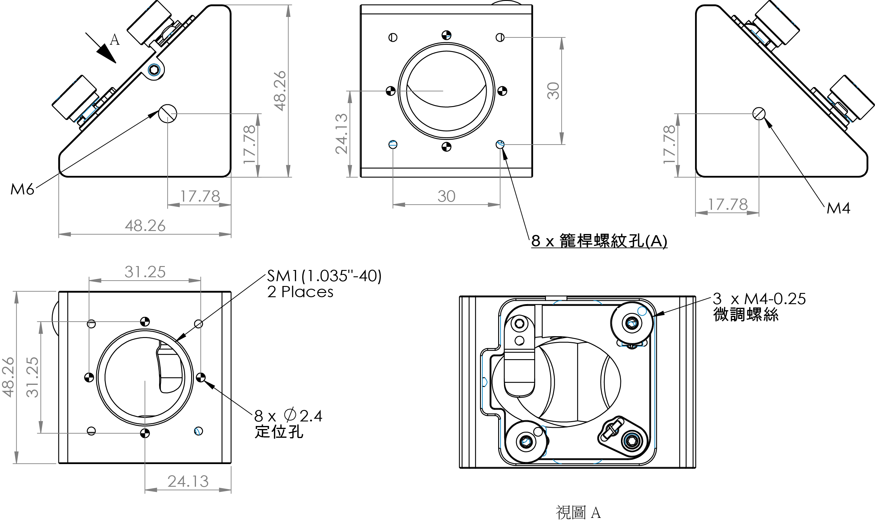 | 型號 | 籠桿安裝孔(A) | 光學元件安裝孔 |