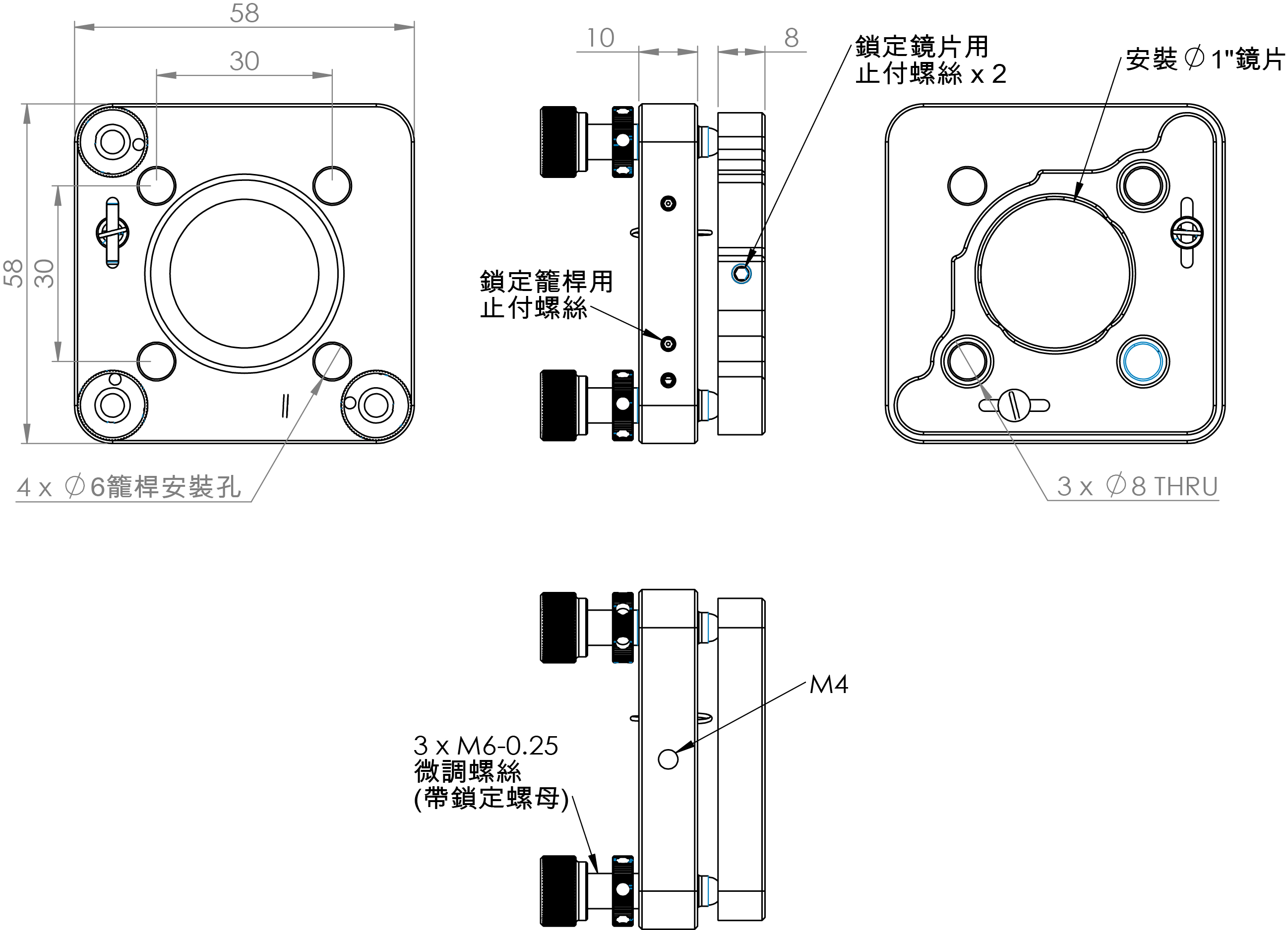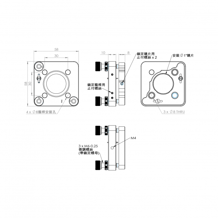 30mm籠式1吋鏡片調整鏡架(安裝孔式)