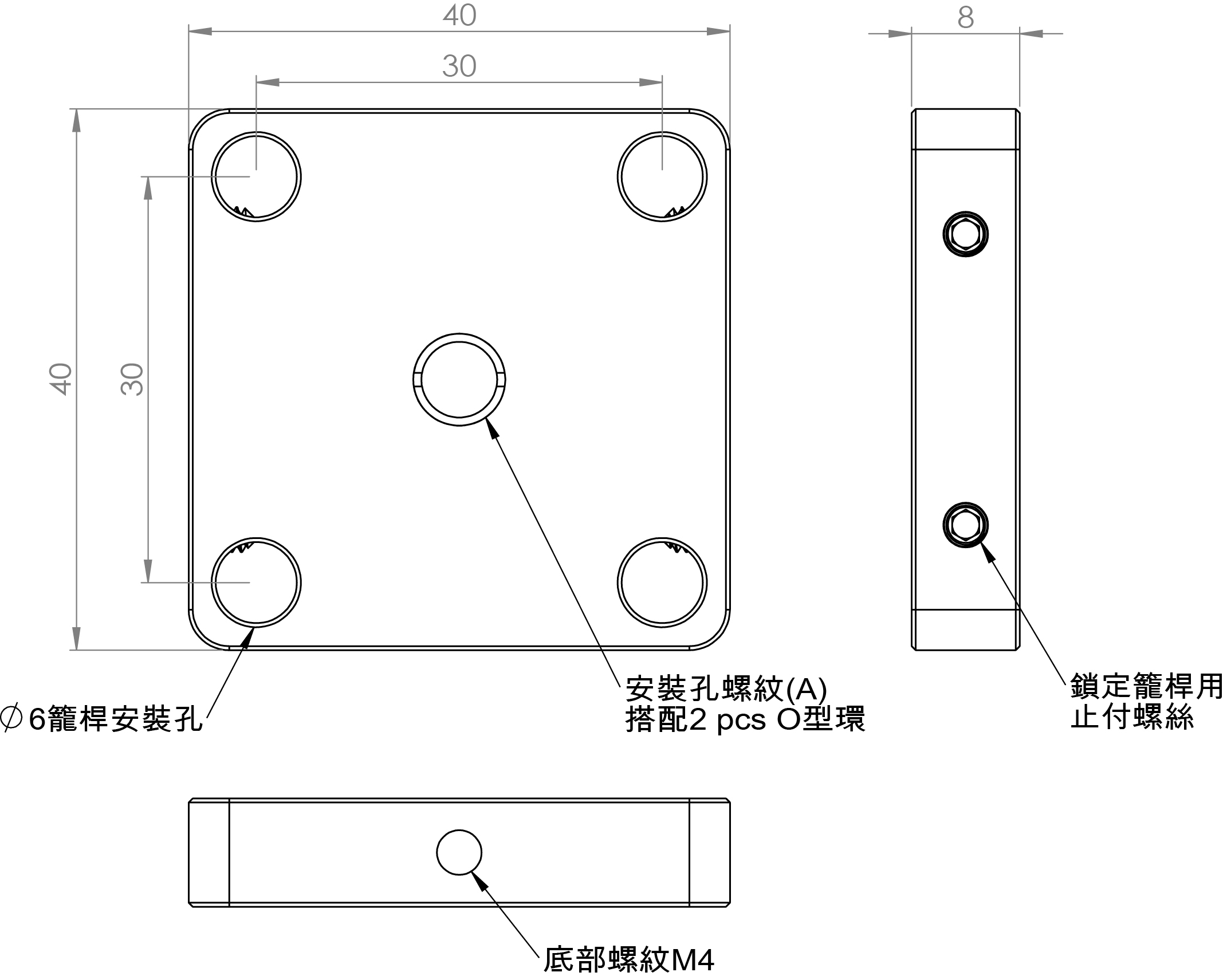 - 帶有不同規格的螺紋孔,附帶2個螺紋O型環,可以安裝對應尺寸的光學元件;
