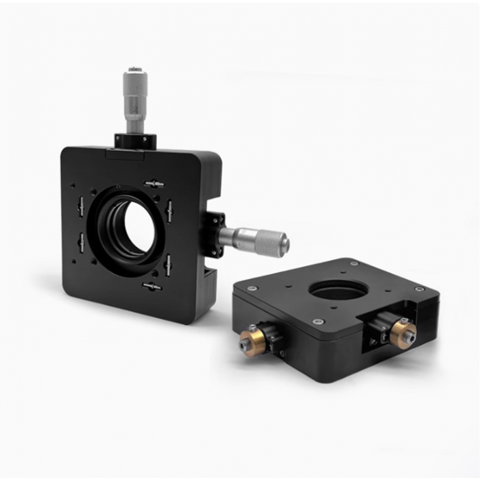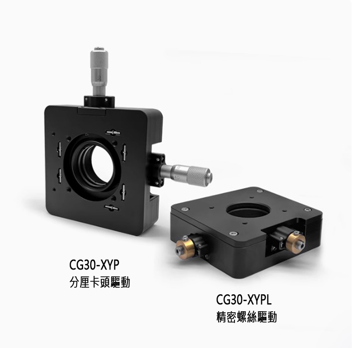 • 搭配2個M6-0.25精密微調螺絲(每圈位移0.25mm)或分厘卡頭(每圈位移0.5mm)