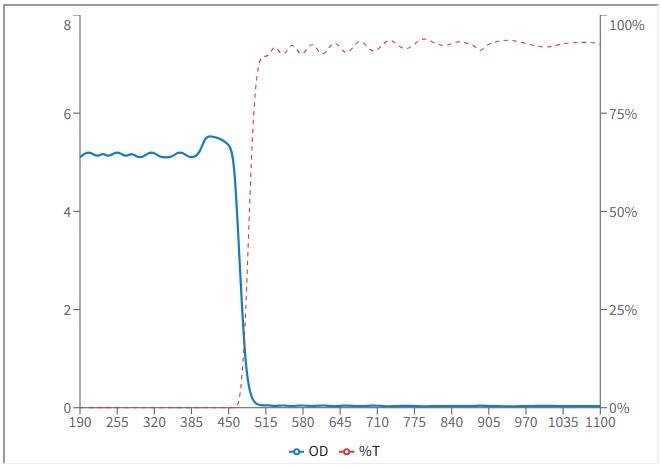 OD(Optical Density):為對雷射的阻擋力,數值越大對雷射阻擋的能力越高,在可見光雷射的應用時,須考慮對光時仍要保持看得到雷射光點而又不刺眼的狀態,因此要選擇適當的OD值,以免阻擋過大而看不到雷射光點無法對光,OD值對應穿透率與阻擋值可參考以下表格: