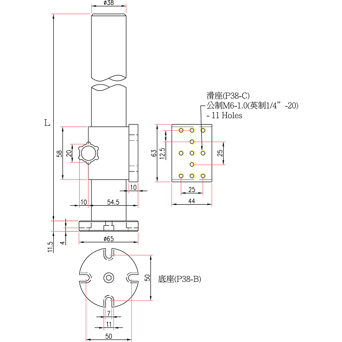 P38-L(長度)-T(公制M6/英制1/4"-20)