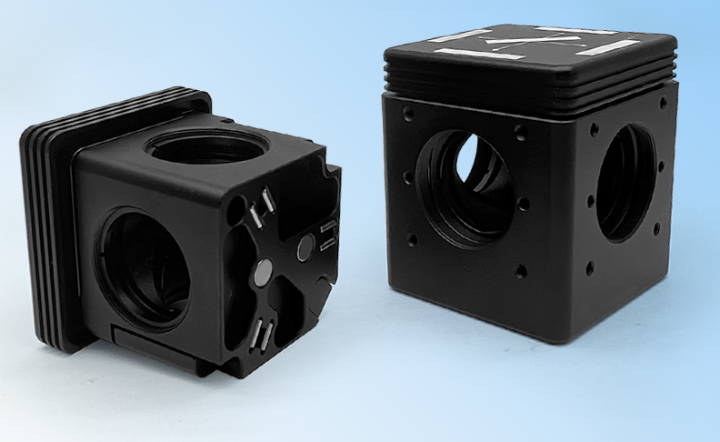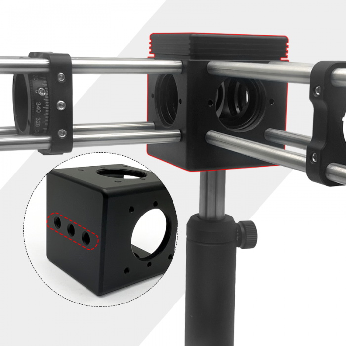 - 用於固定螢光濾光片組的 30 mm 籠式立方體;