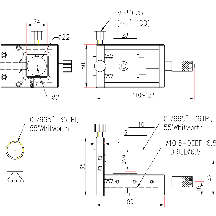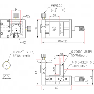 型號:SF10A 說明:雷射光束經過物鏡聚焦,透過針孔在焦平面將光的高頻雜訊濾除,只讓基頻光通過 不含針孔與物鏡 搭配波長633nm的雷射時,針孔 X 物鏡倍率約等於200,建議搭配方式如下 物鏡 倍率 4X 10X 20X 40X 60X 針孔 尺寸 50um 20 or 25um 10 or 15um 5 or 10um 5um以下