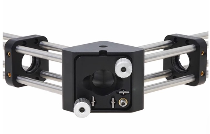 斜面帶三個M3-0.25微調螺絲,可微調±3º俯仰和偏擺角度,三軸同時微調可以有±1 mm線性位移,補償光束偏移。