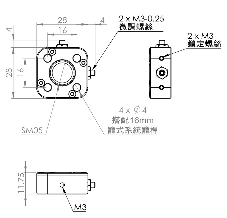- 適用0.5吋(12.7mm)光學元件,直接安裝最大厚度5.6mm