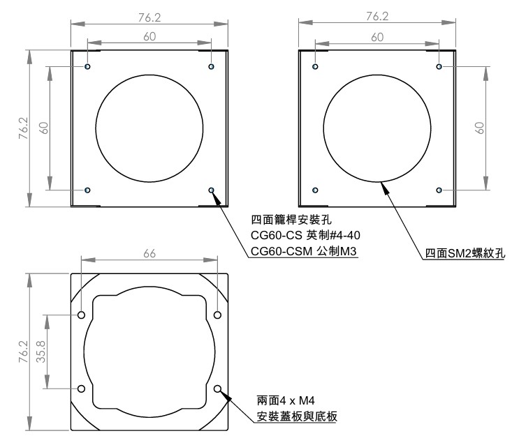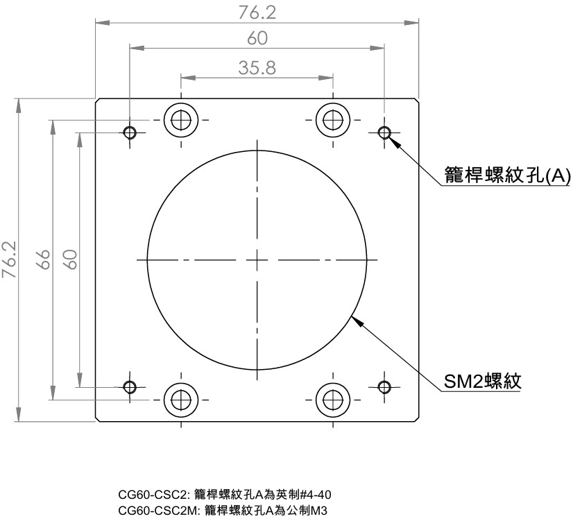 | CG60-CS | 4面帶英制4-40螺紋孔 |