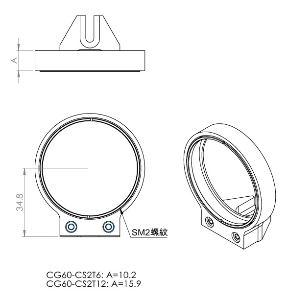 | CG60-CS2T12 | 立方體用鏡架,帶SM2螺紋孔安裝座, 安裝厚度最大12.3 mm |