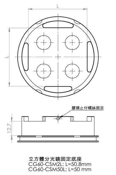 | CG60-CSM50L | 50 x 50 x 50 mm 分光立方體安裝座 |